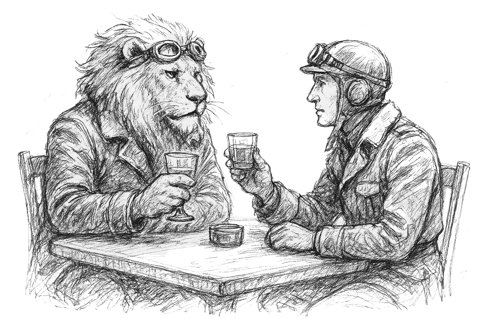 - Non… c’est vrai ? Toi aussi ? s’exclama l’aviateur à la grande crinière, les yeux brillants d’un souvenir.