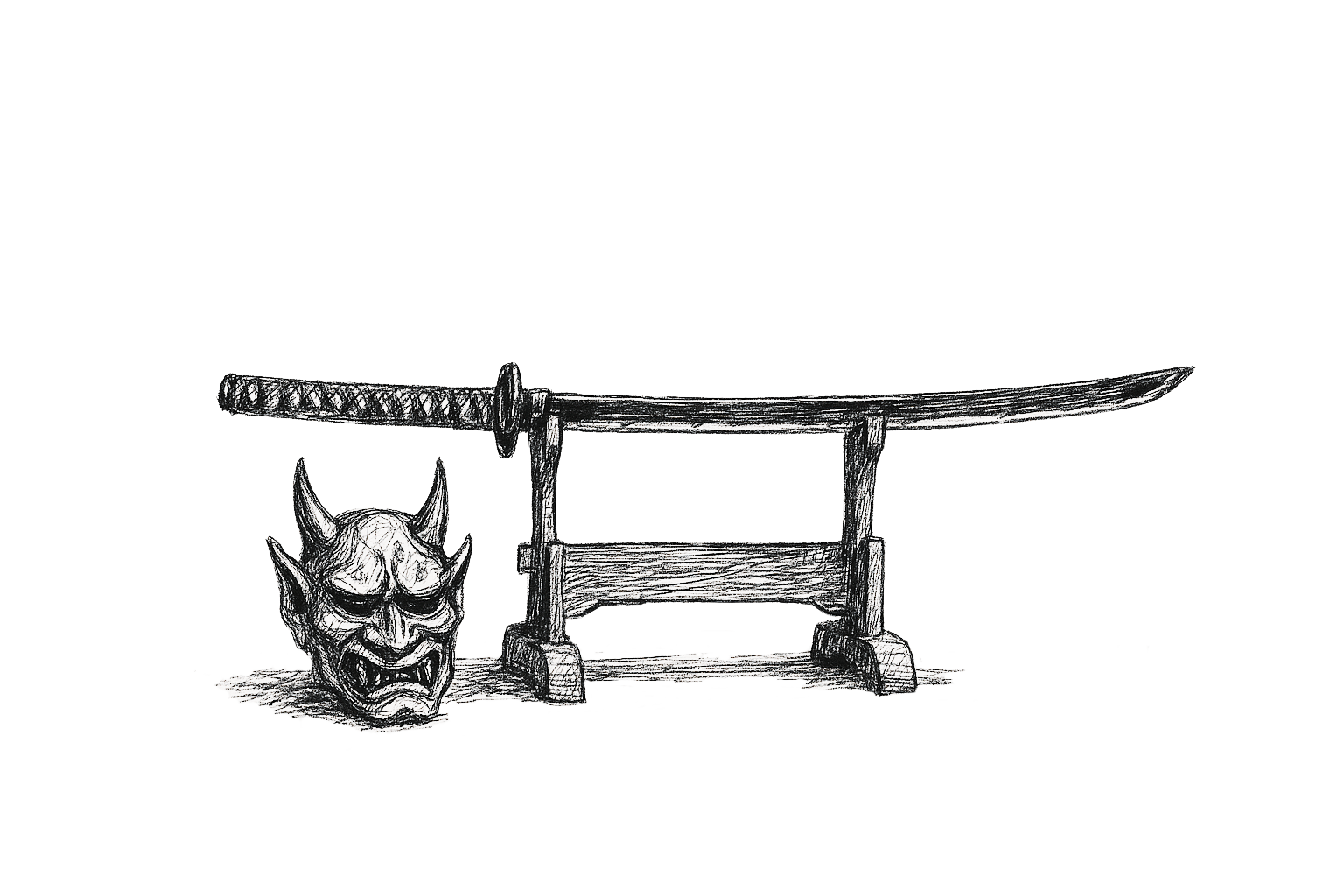 Depuis mon plus jeune âge, le sabre de mon grand-père m’a toujours fasciné. Il repose là, immobile, sur son katanakake, veillé par un masque japonais de démon au sourire figé. Ensemble, ils semblent former un duo silencieux, chargé de secrets anciens. À mes yeux d’enfant, ce sabre n’est pas un simple objet : il respire le mystère, dégage une aura à la fois maléfique et merveilleuse, comme s’il contenait en lui l’écho d’un passé interdit.
